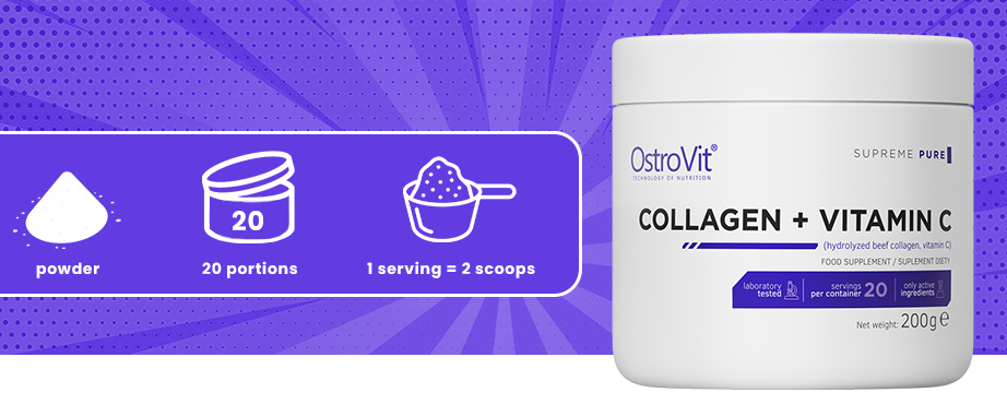 OstroVit Collagen + Vitamin C je najkvalitetniji dodatak prehrani u prahu kreiran za osobe kojima nisu potrebne arome, zaslađivači i drugi konzervansi. Regenerator namijenjen fizički aktivnim osobama i onima koji imaju povećanu potražnju za kolagenom i vitaminom C.